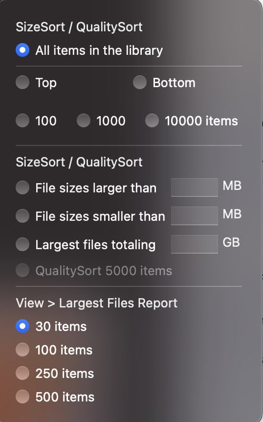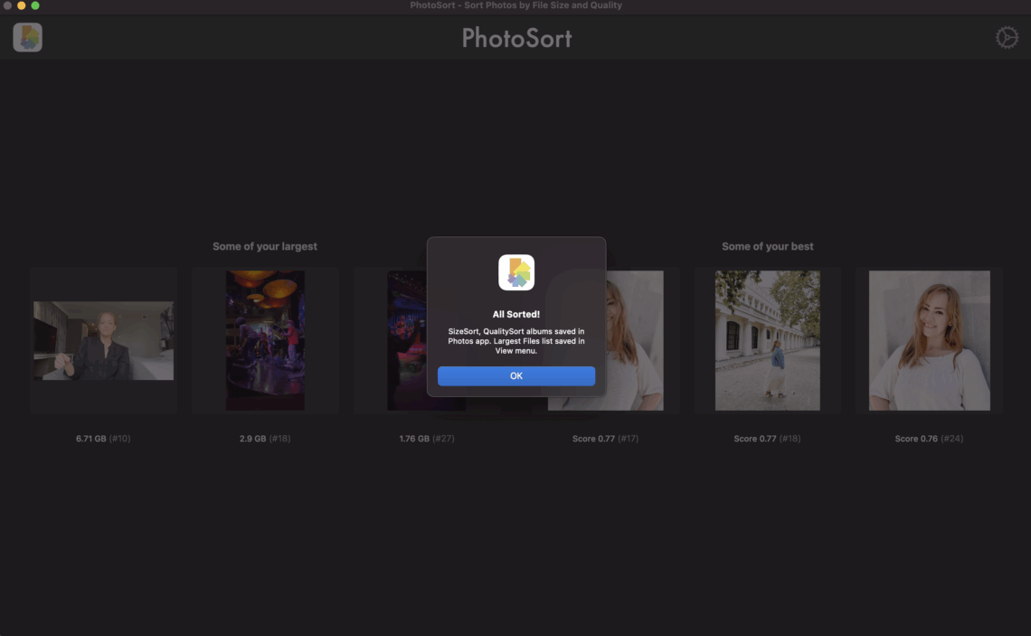 To get the accurate view, change the settings for how you wish to sort and see results. PhotoSort will create two albums in the Photos app: SizeSort and QualitySort, arranging your photos and videos in descending order of file size and aesthetic quality. The fact that these albums are created in Photos on Mac is handy, because this lets you manage (e.g. offload, delete, or Favorite) photos from within the Photos app itself.